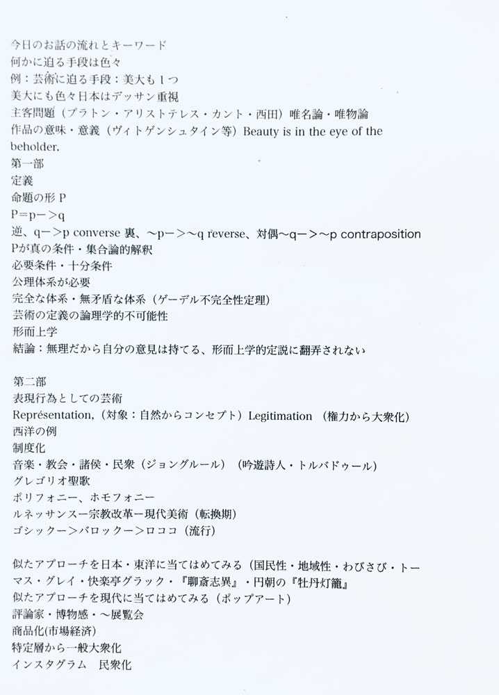 アドヴァンスドクラス特別講座のお知らせ「芸術、美術についての深いお話」全2回芸術とは何か?美術とは何か?について多角的視点からの深い考察でその本質に迫ります。高いレベルの内容でありながらそのわかり易い言葉での語りに定評があります。芸術論に興味があるけど”難しい話は苦手という方から専門的なレベルを求める方まで対応出来る講義なのでお気軽にご参加下さい。あなたの知らない世界の扉一度開けてみては…? 特別講師:酒井博朗1995年 神奈川県生まれ1974 年 渡英英国コンコードカレッジ英国バッキングガム大学 政治・経済・法律学科にて学士号取得1982年 帰国1983年より東海大外国語教育センター第一課程・1類勤務現在 同大学国際教育センター非常勤講師