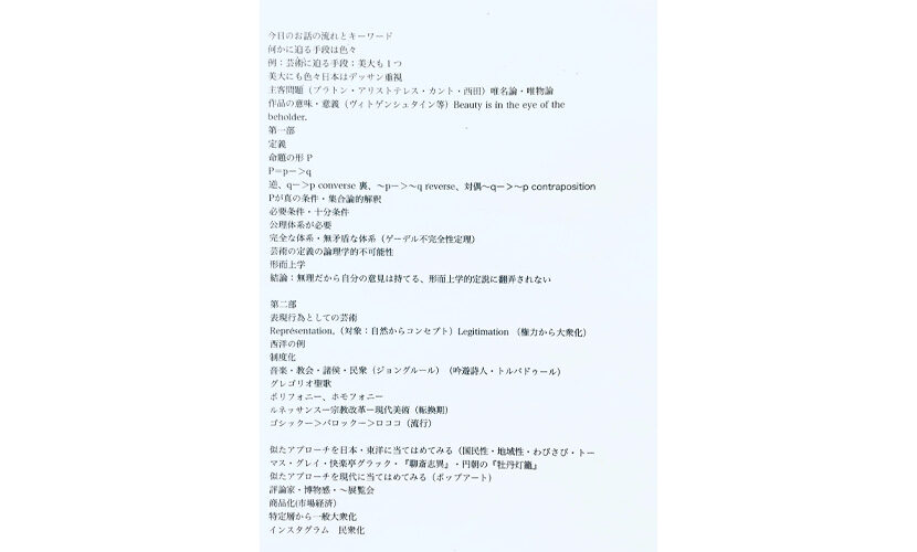 アドヴァンスドクラス特別講座のお知らせ「芸術、美術についての深いお話」全2回芸術とは何か?美術とは何か?について多角的視点からの深い考察でその本質に迫ります。高いレベルの内容でありながらそのわかり易い言葉での語りに定評があります。芸術論に興味があるけど”難しい話は苦手という方から専門的なレベルを求める方まで対応出来る講義なのでお気軽にご参加下さい。あなたの知らない世界の扉一度開けてみては…? 特別講師:酒井博朗1995年 神奈川県生まれ1974 年 渡英英国コンコードカレッジ英国バッキングガム大学 政治・経済・法律学科にて学士号取得1982年 帰国1983年より東海大外国語教育センター第一課程・1類勤務現在 同大学国際教育センター非常勤講師