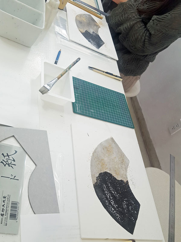 3月1日(日)の休校日に、武井地子講師の日本画マチエール講座第2弾「砂子ー箔を蒔くー」を開催しました。
