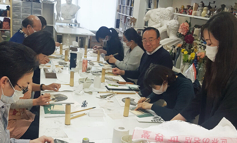 前回、2月の銀箔をはる講座も大好評で、日本画の優美な世界を垣間見ることができました。
