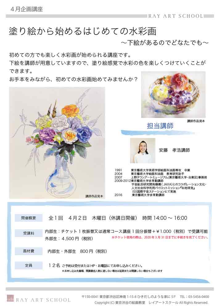 | 全1回 2020年4月2日(木)14:00〜16:00 |