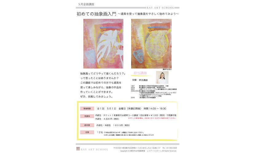 この講座では初めての方も道具を使って楽しみながら、抽象の作品を作っていくことができます。