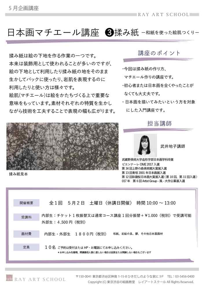 内部生・外部生 1,800円(税別)和紙・岩絵の具・膠・その他日本画画材