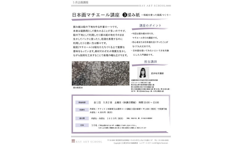 内部生・外部生 1,800円(税別)和紙・岩絵の具・膠・その他日本画画材