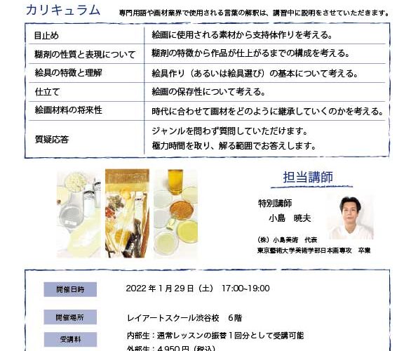 ※2021年11月22日開講の『基礎画材論、Q&A』と同じ講座内容です。