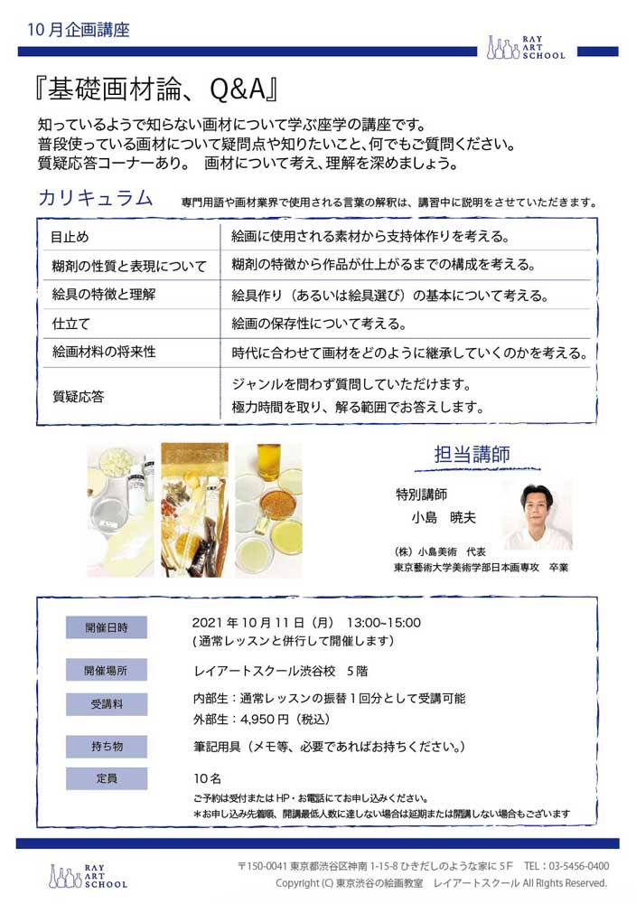 11月企画講座『基礎画材論、Q&A』を開催いたします!!