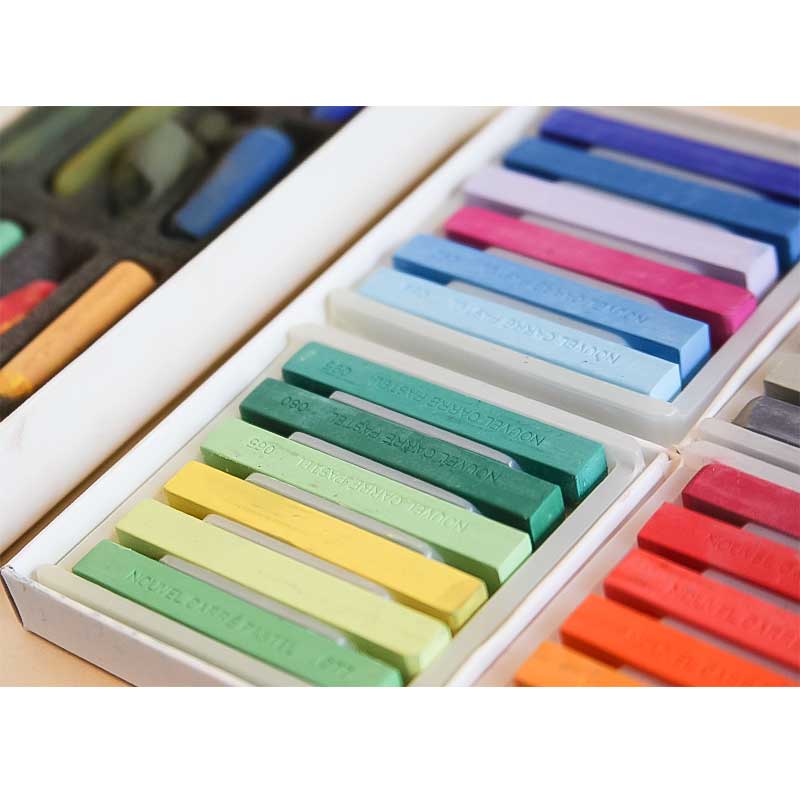 パステルは顔料に粘着剤を混ぜて棒状に固めた画材です。パステルに混ぜる粘着剤の量の違いでソフトパステルとハードパステルがあります。描写に合わせて使い分けましょう。