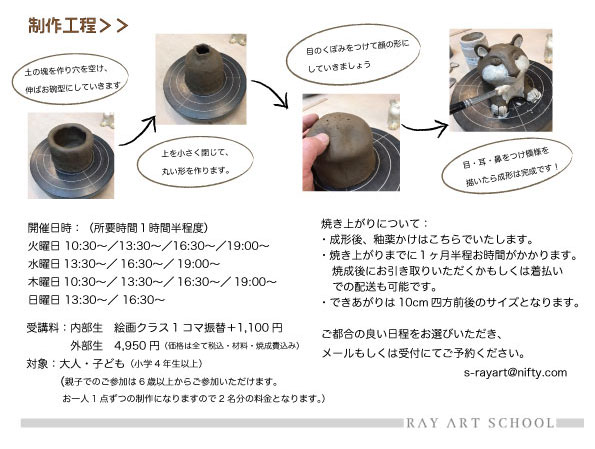 陶器の素材感を生かして、 インテリアにも、縁起物にもなる かわいい置き物をつくりましょう。