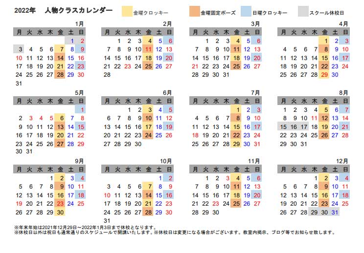なお人物クラスにはクロッキーと固定ポーズがあります。