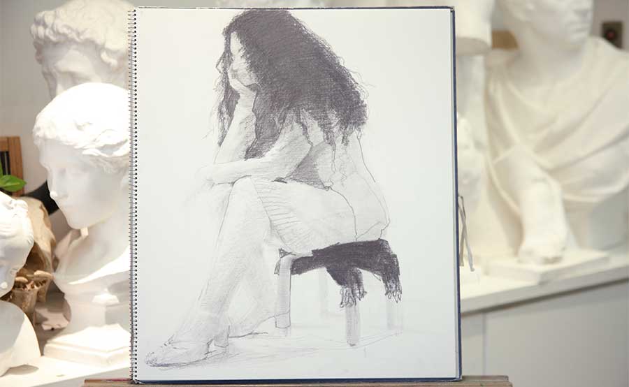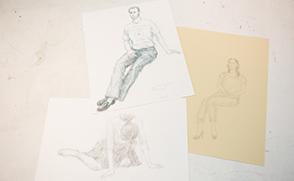 人物クラスでは実際に着衣モデルを描いて経験を積むことが出来ます。